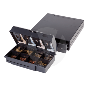 Kassenlade, Frontöffnung, Einsatz: 4 Scheinfächer, 8 Münzfächer, 1 receipt compartment, Maße, B 385mm, H 95mm, T 435mm, separat bestellen: Schnittstellenkabel, Farbe: anthrazit