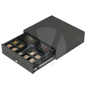 Kassenlade, Frontöffnung, 484x143x435mm, 10 Scheinfächer, 14 Münzfächer, 2 Belegfächer, 3 pos. Schloss, unterschiedliche Schließung, 75er Serie, Farbe: weiß