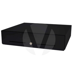 Kassenlade, Frontöffnung, 446x109x410mm, 5 Scheinfächer, 8 Münzfächer, 2 Scheckschlitze, Unterbau geeignet, 3 pos. Schloss, unterschiedliche Schließung, 24V, inkl.: Kabel (RJ11), Farbe: schwarz