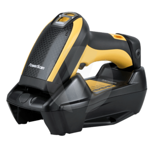 Bluetooth Scanner, 1D, Linear-Imager, Green Spot, 3GL, Multi Interface (RS232, KBW, USB), IP65, inkl.: Kabel (USB, gerade, 2m), Netzteil, Netzkabel (EU), Lade-/Übertragungsstation, herausnehmbare Batterie, Farbe: schwarz, gelb