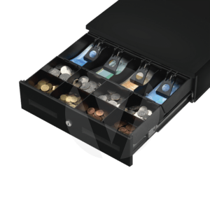 Kassenlade, Frontöffnung, Maße (BxHxT): 340x118x367mm, 4 Scheinfächer, 8 Münzfächer, 2 Scheckfächer, gleiche Schließung, verschließbare Abdeckung, separat bestellen: Schnittstellenkabel, Farbe: hellgrau