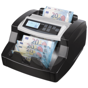 Zählmaschine, Banknoten, vorsortiert (Euro Scheine), Zählrate: bis zu 1.000 Scheine/Min., Display, Bündelfunktion, Echtheitsprüfung (UV, IR, MG-Merkmale), Maße, B 260mm, H 174mm, T 289mm